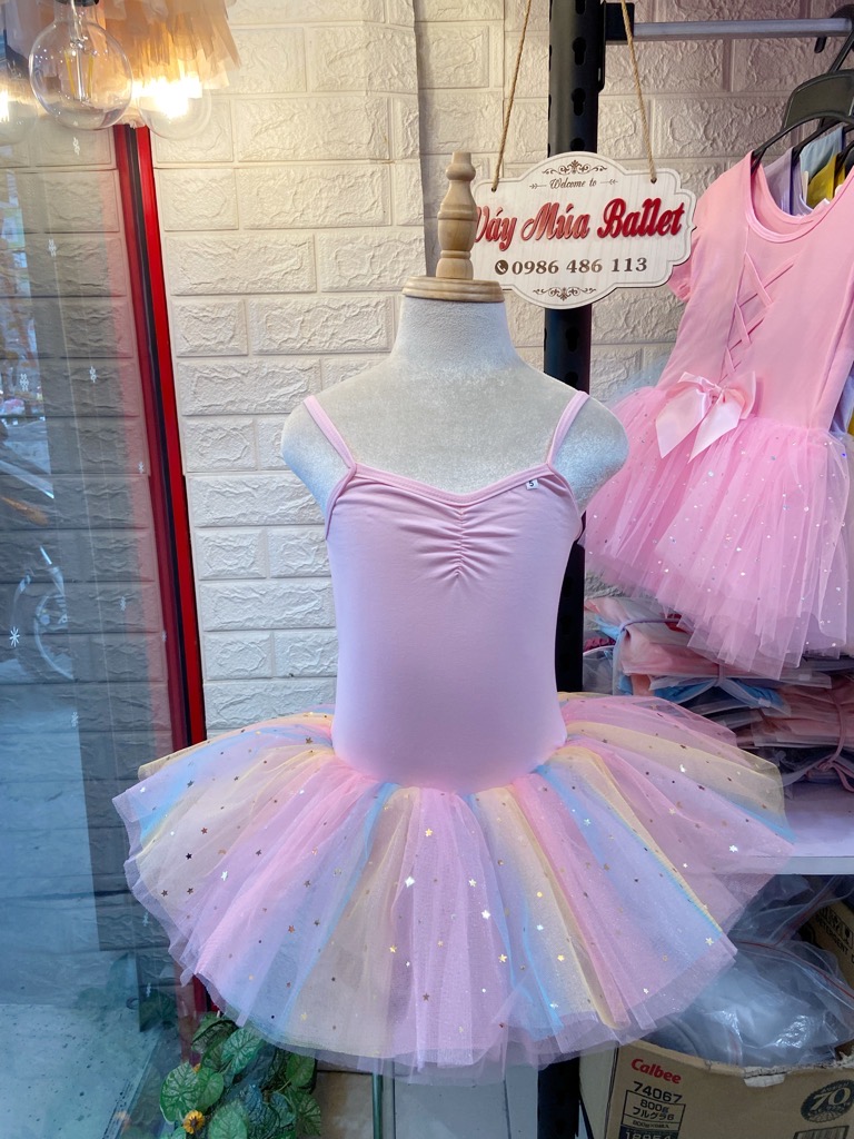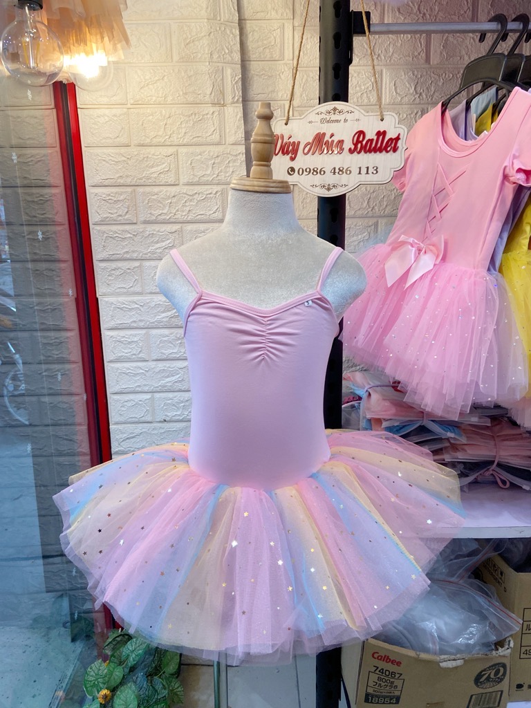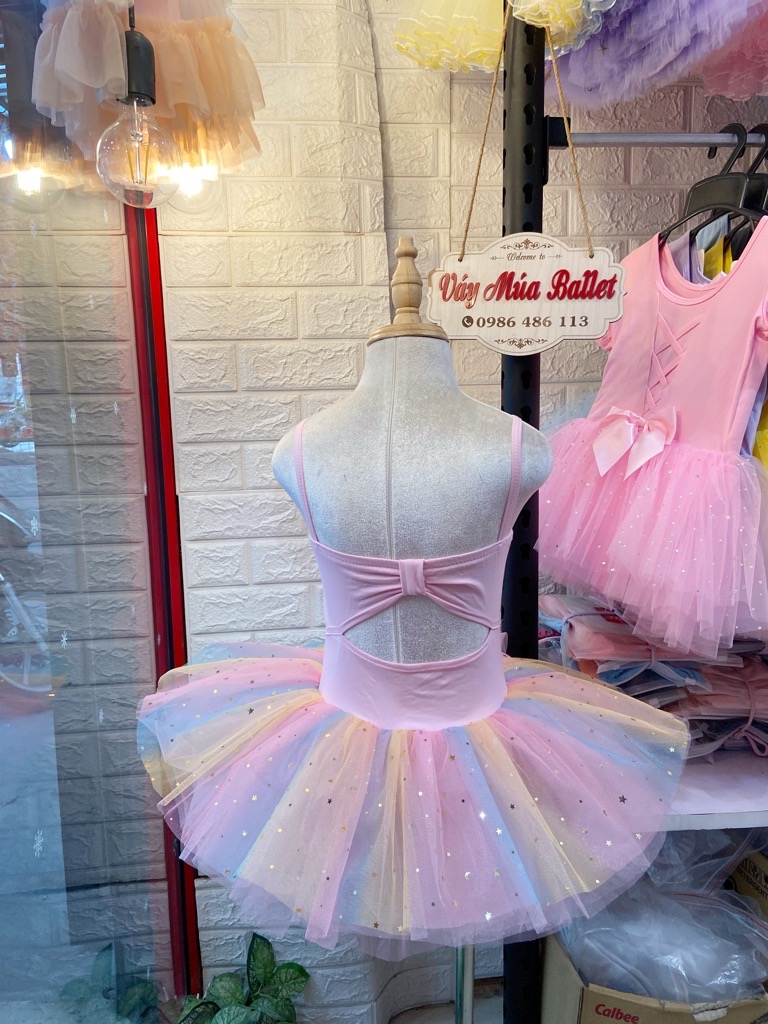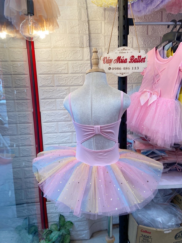 - Mô tả: Váy múa 2 dây nơ lưng cầu vồng