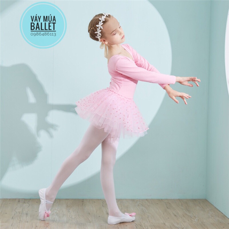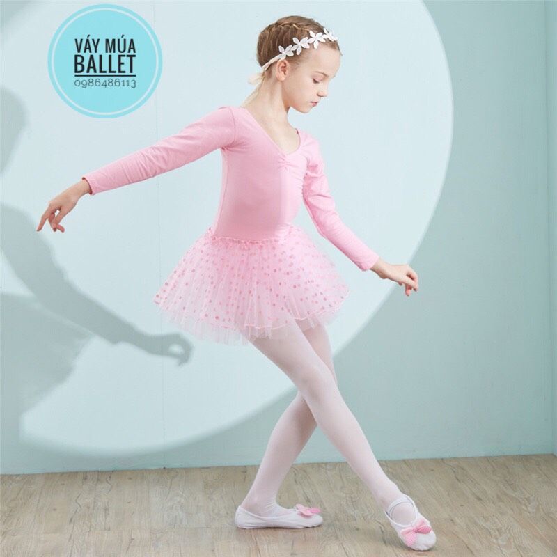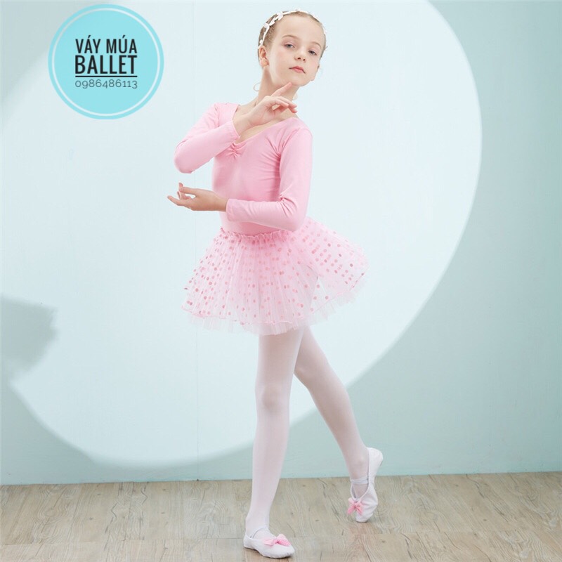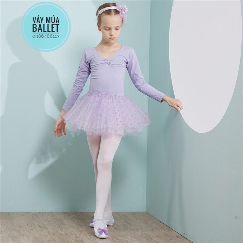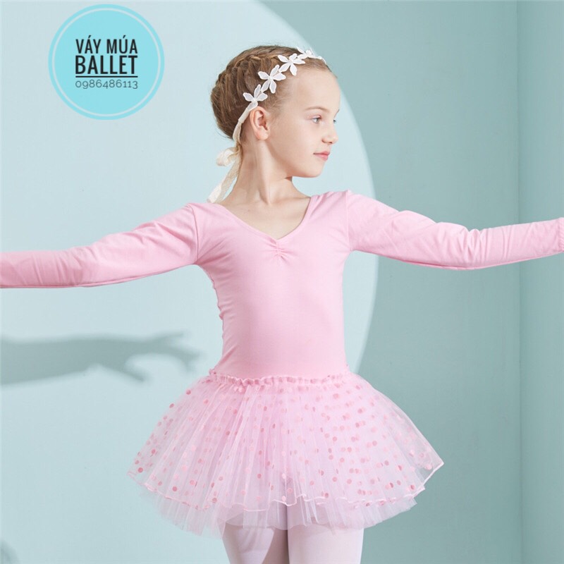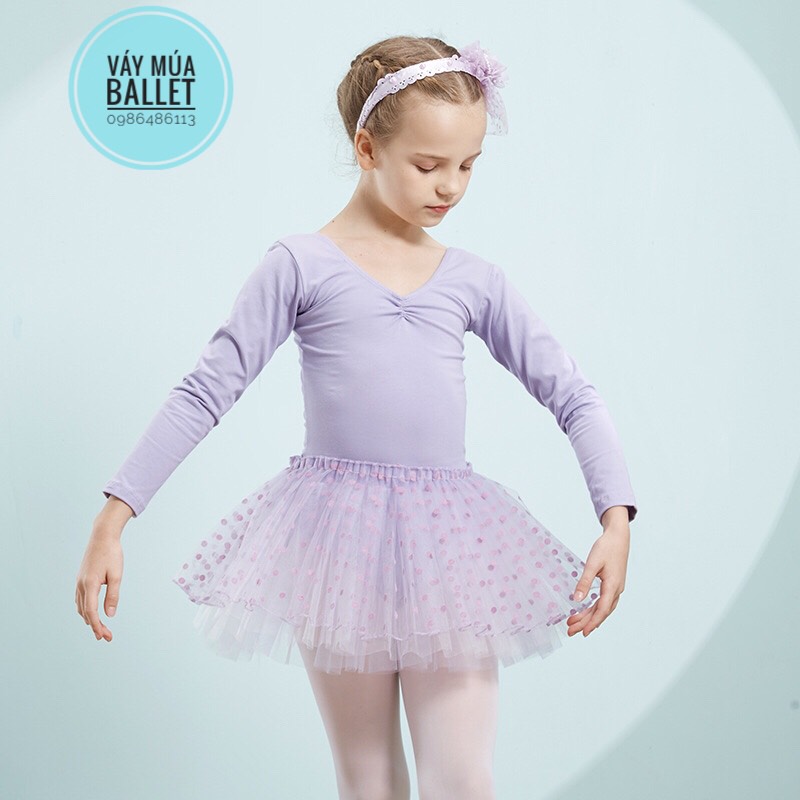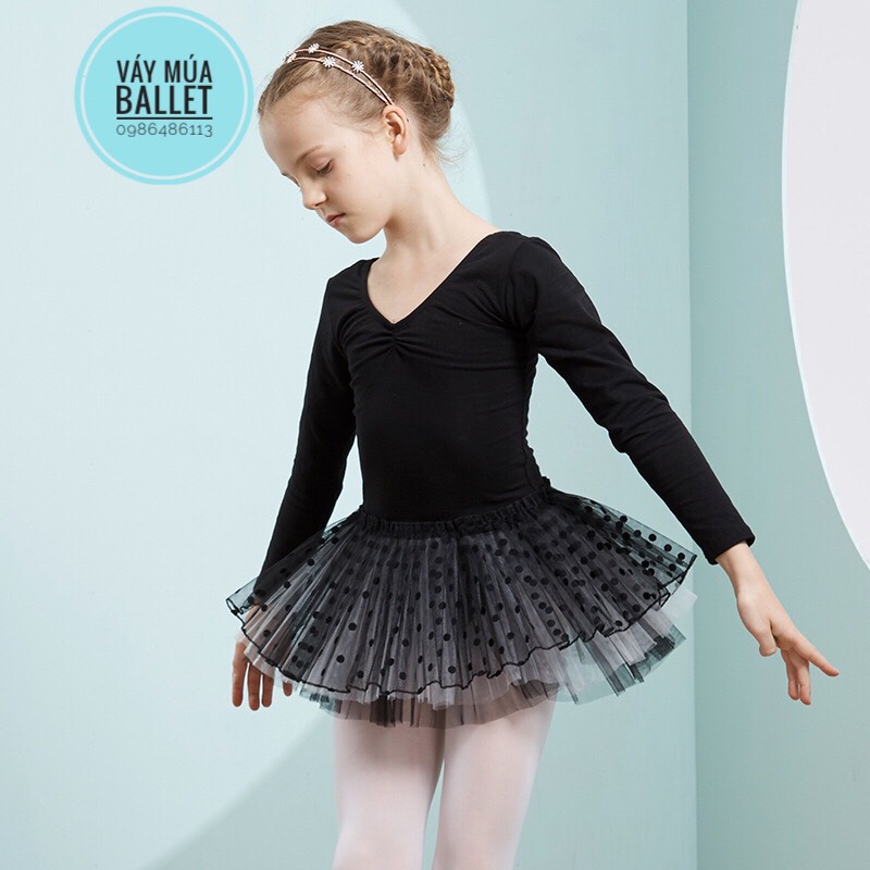 - Mô tả: Váy múa basic chân váy chấm bi dài tay (đen, hồng, tím)