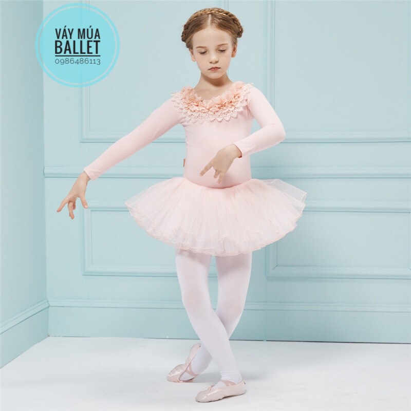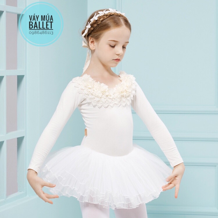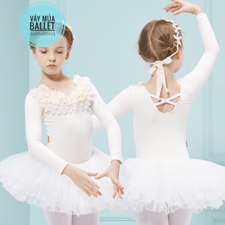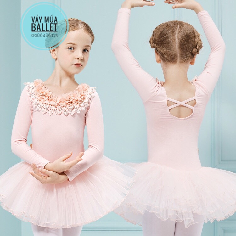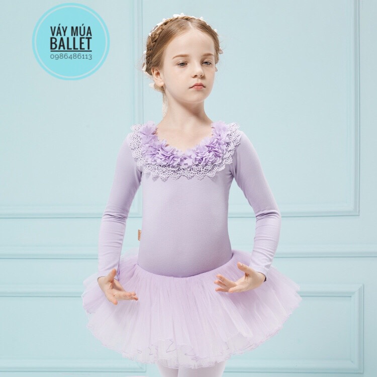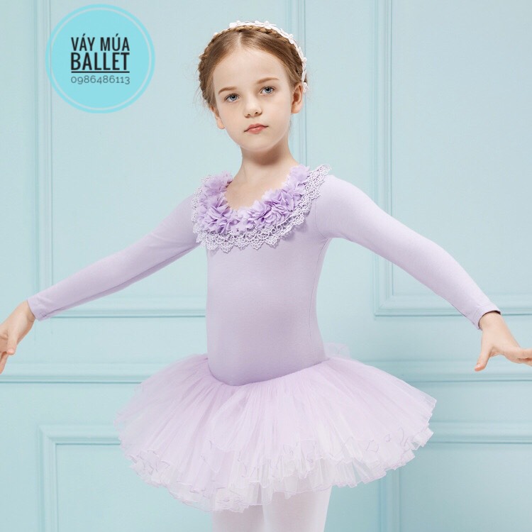 - Mô tả: Váy múa hoa cổ ngọc dài tay (tím, hồng, trắng)