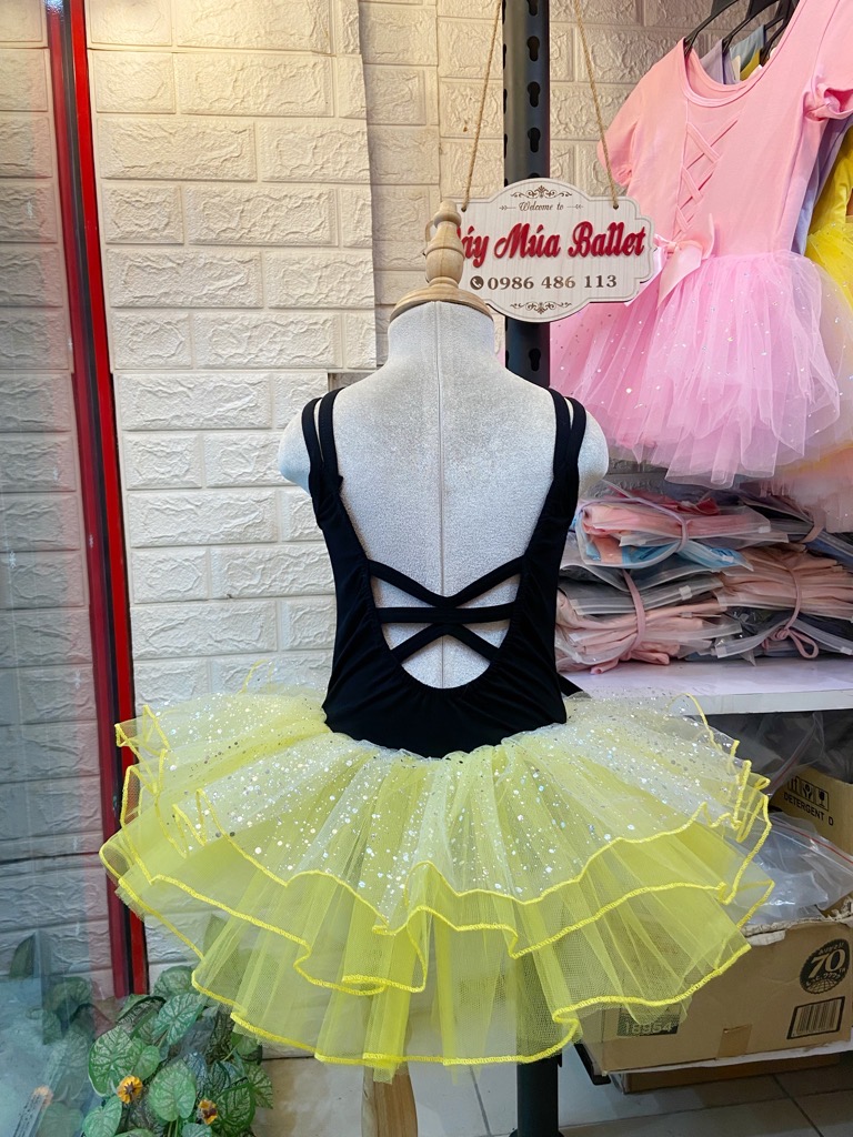 - Mô tả: Váy múa dây đan lưng girl nhũ lấp lánh