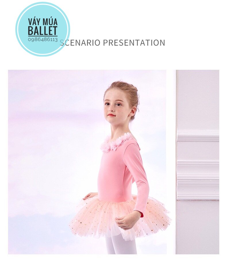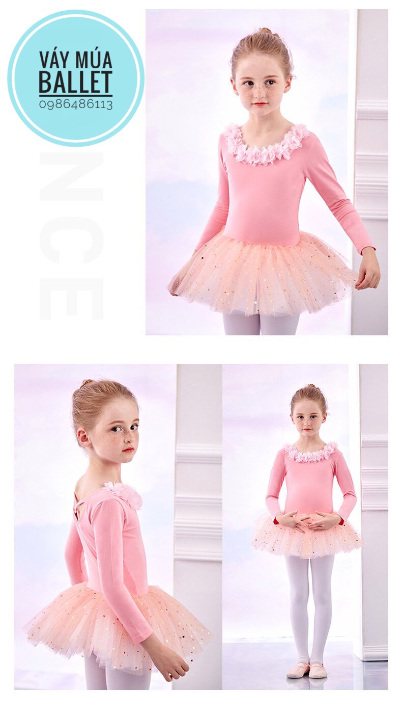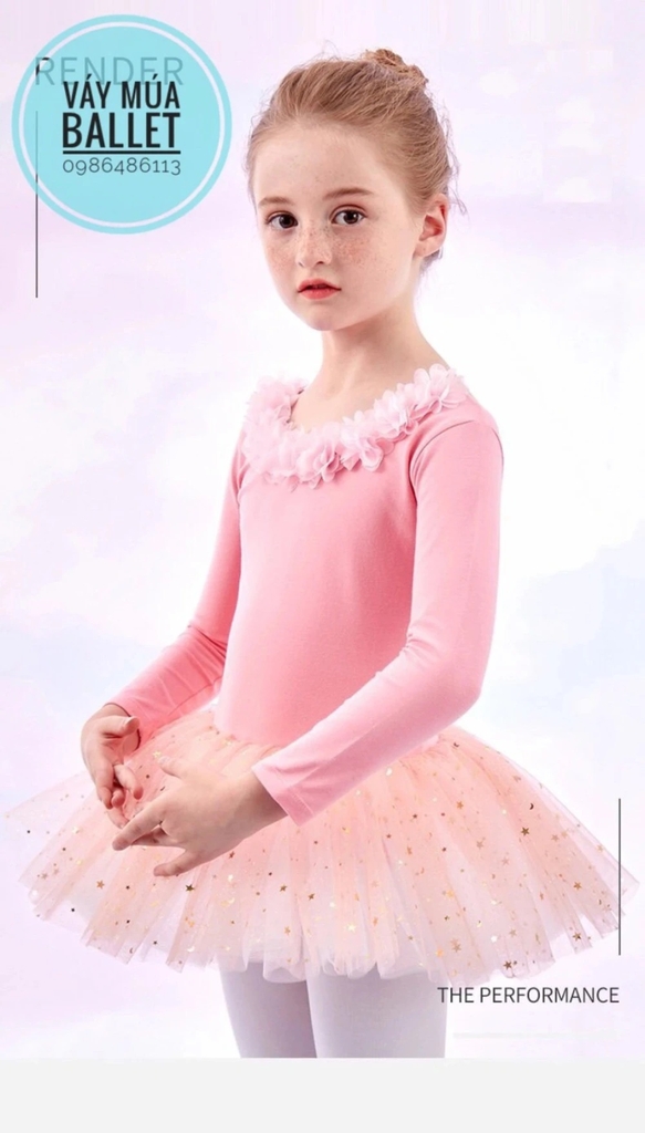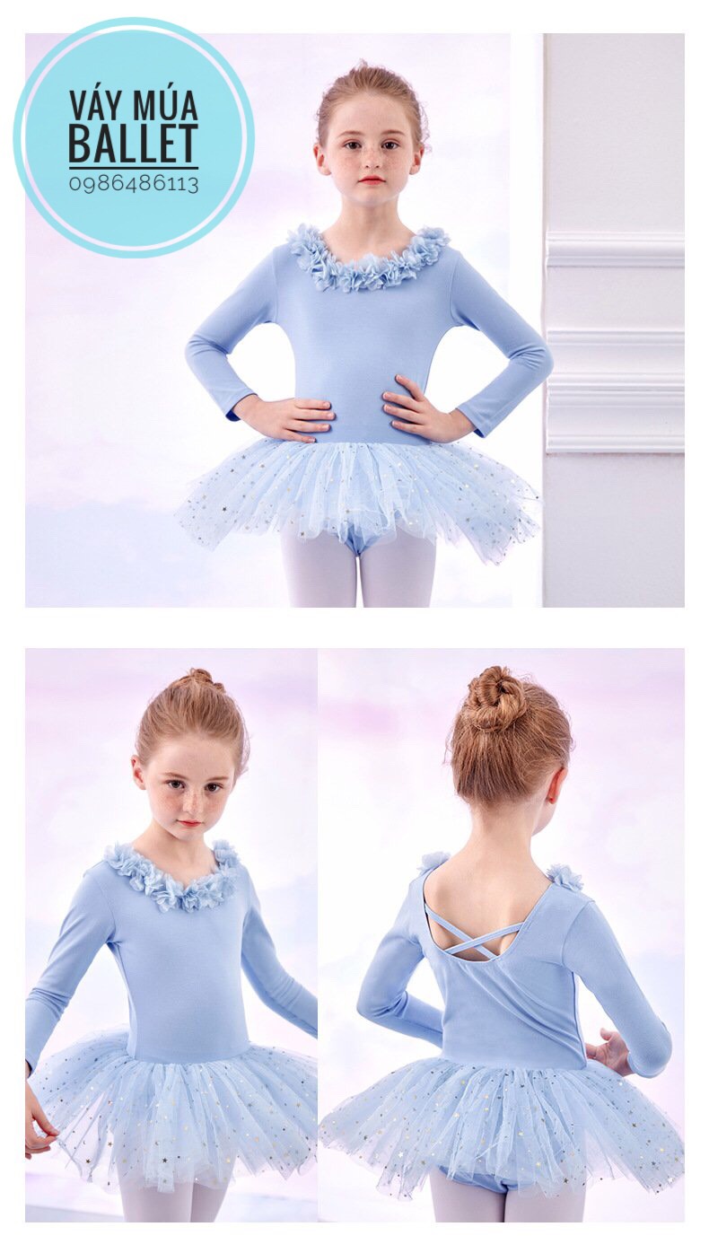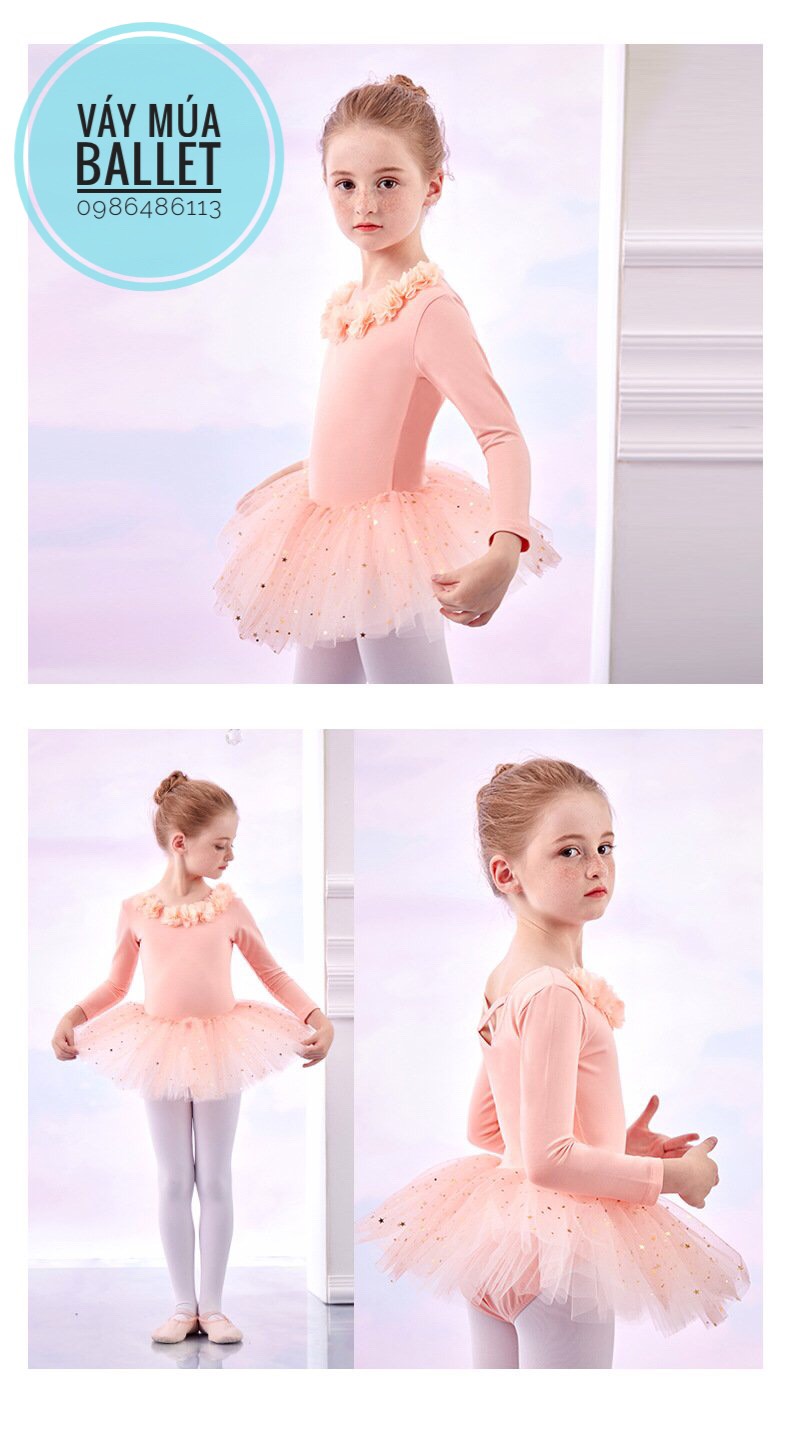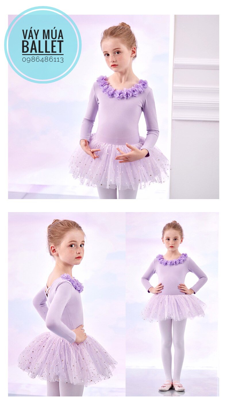 - Mô tả: Váy múa hoa cổ sao dài tay (kem, hồng, tím, xanh)