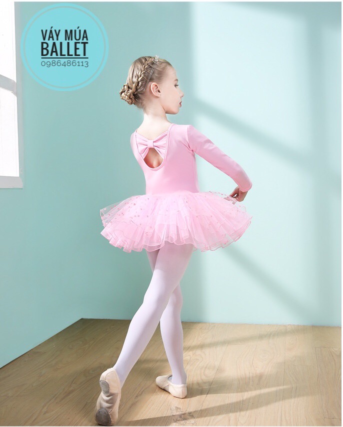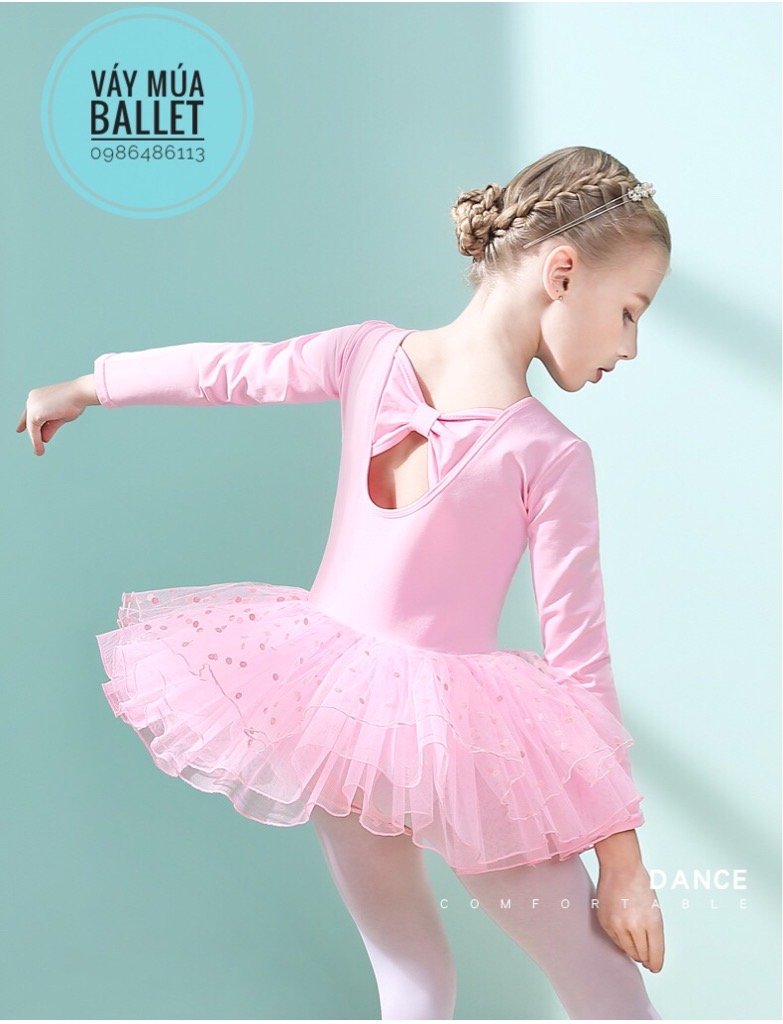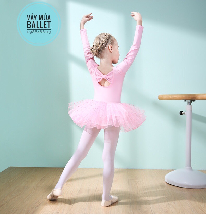 - Mô tả: Váy múa nơ lưng chân váy bi dài tay