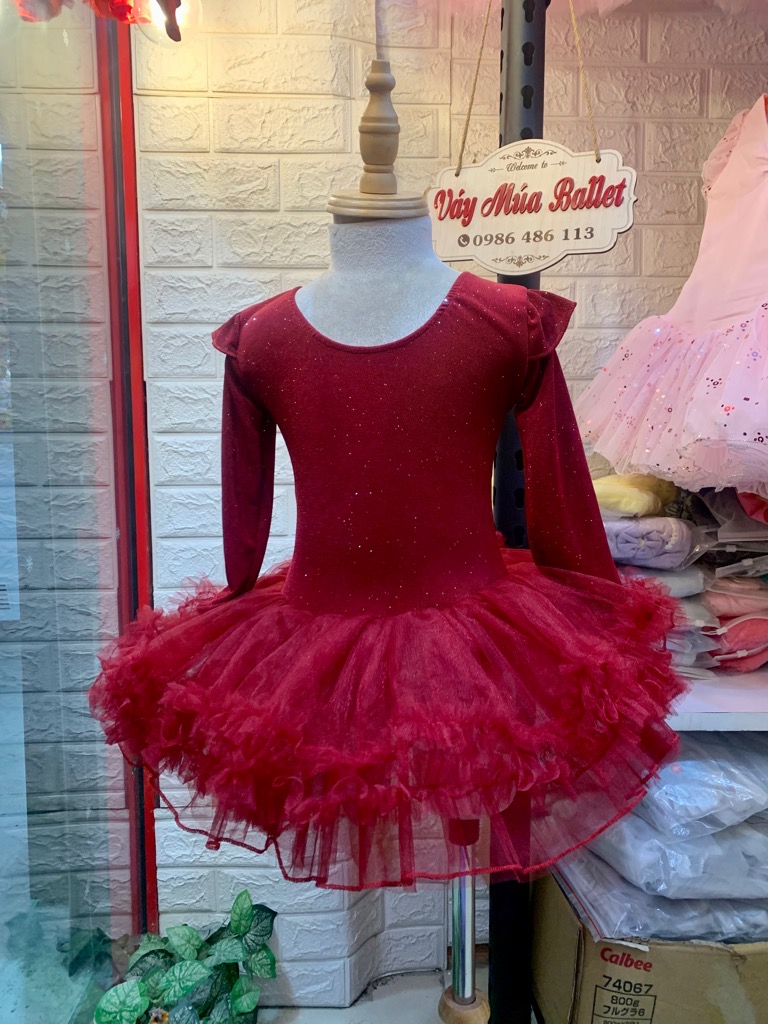 - Mô tả: Váy múa tiên dài tay thun nhũ tutu