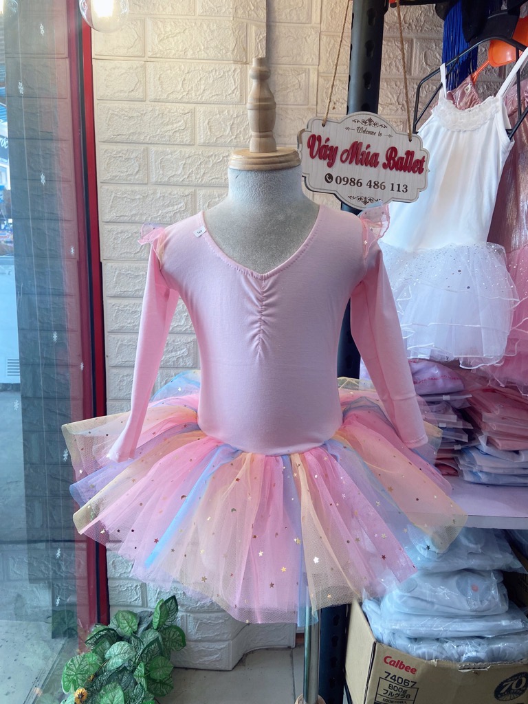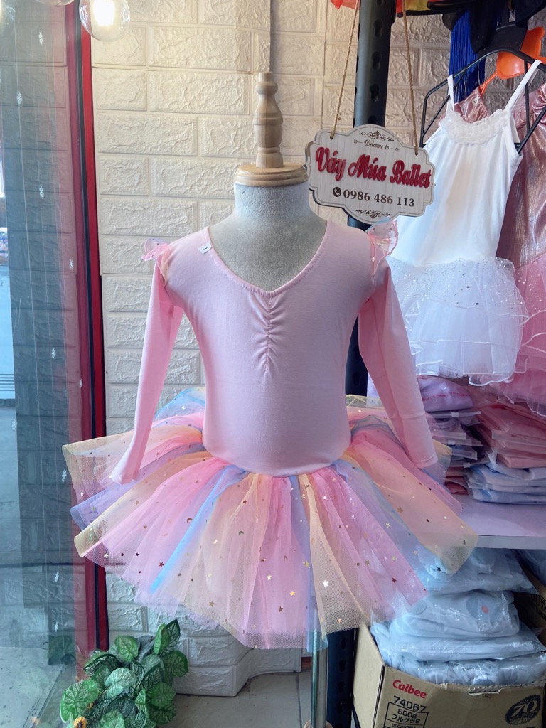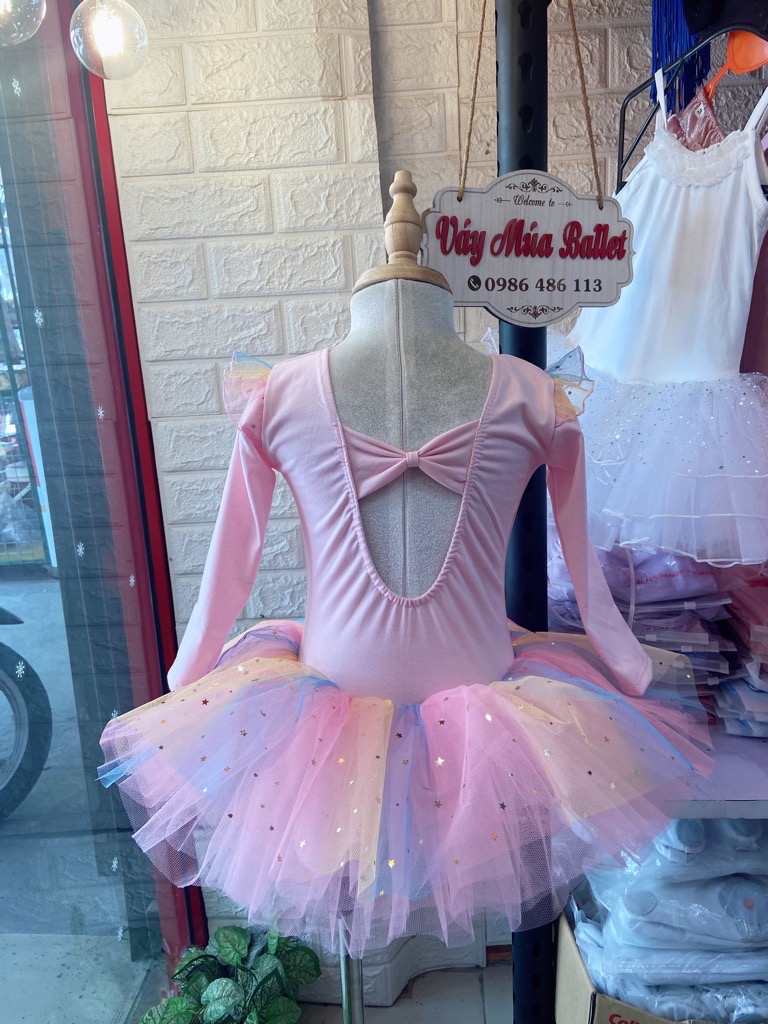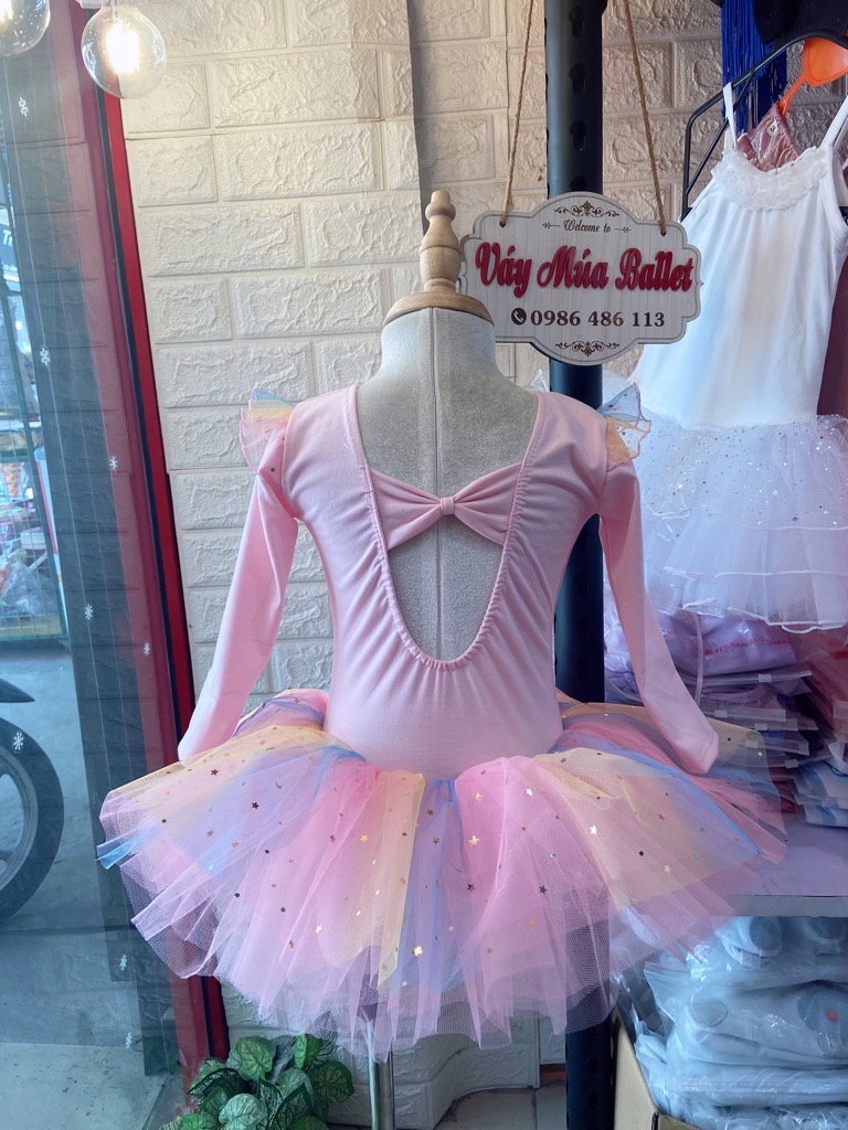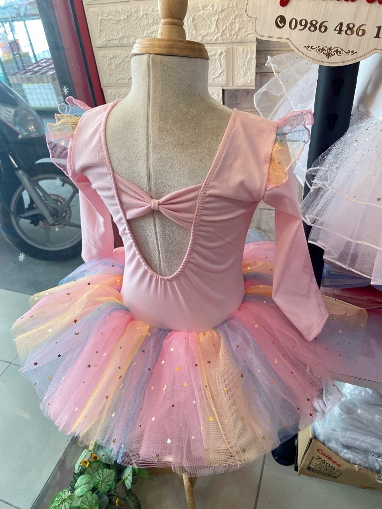 - Mô tả: Váy múa tiên dài tay cầu vồng hồng
