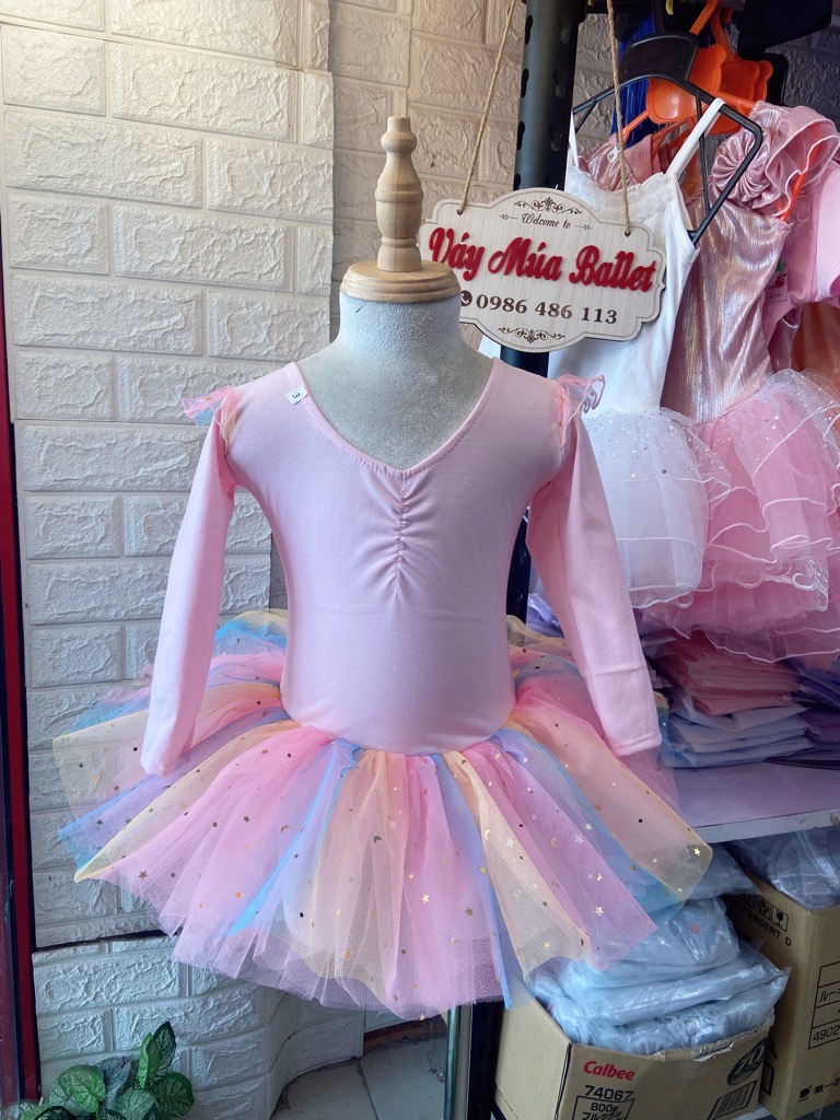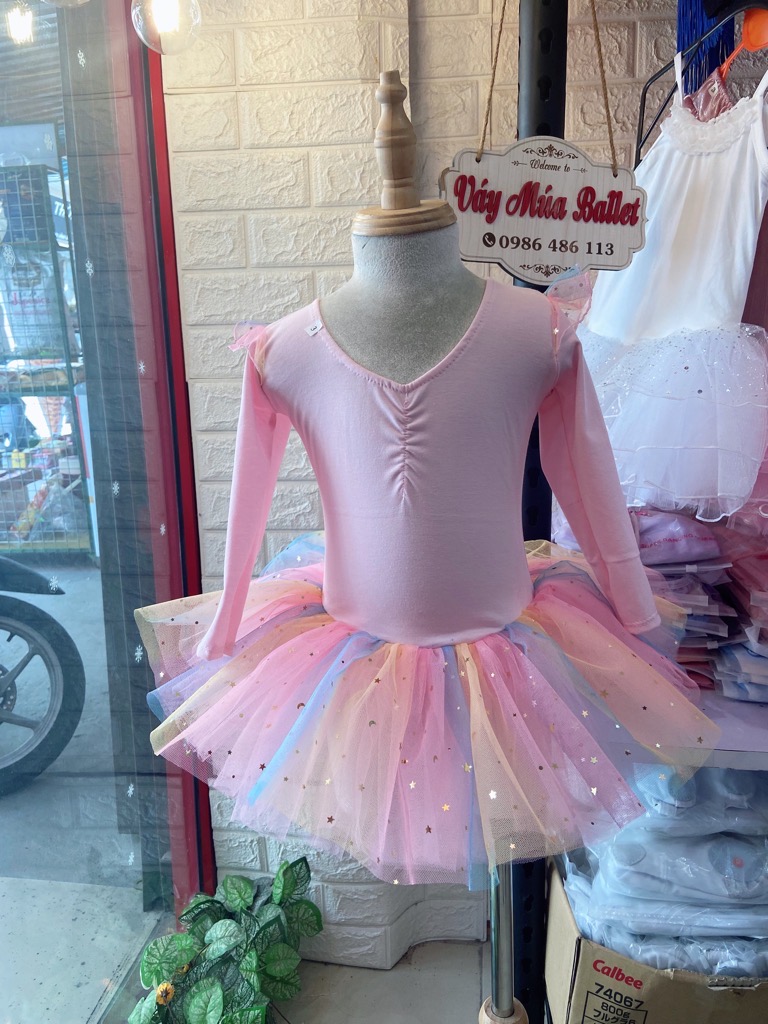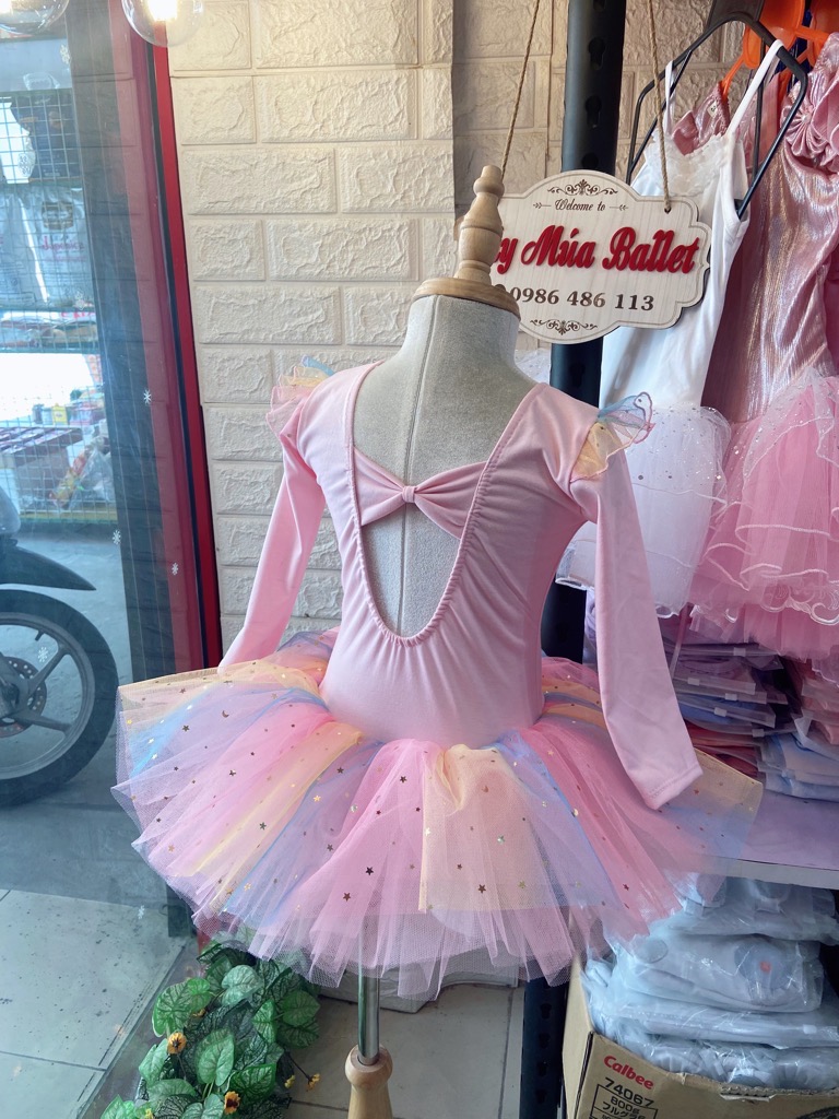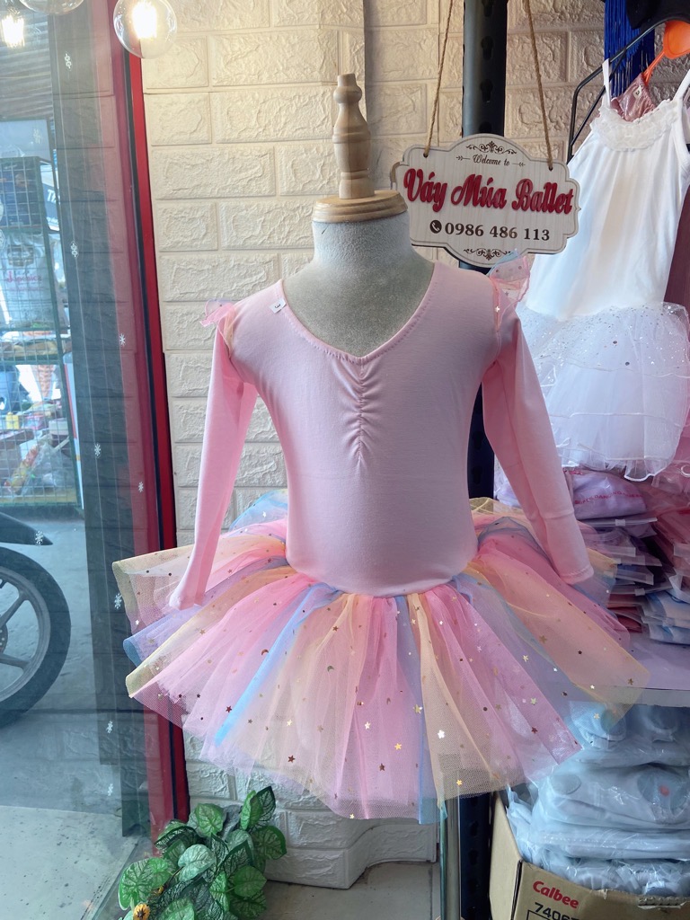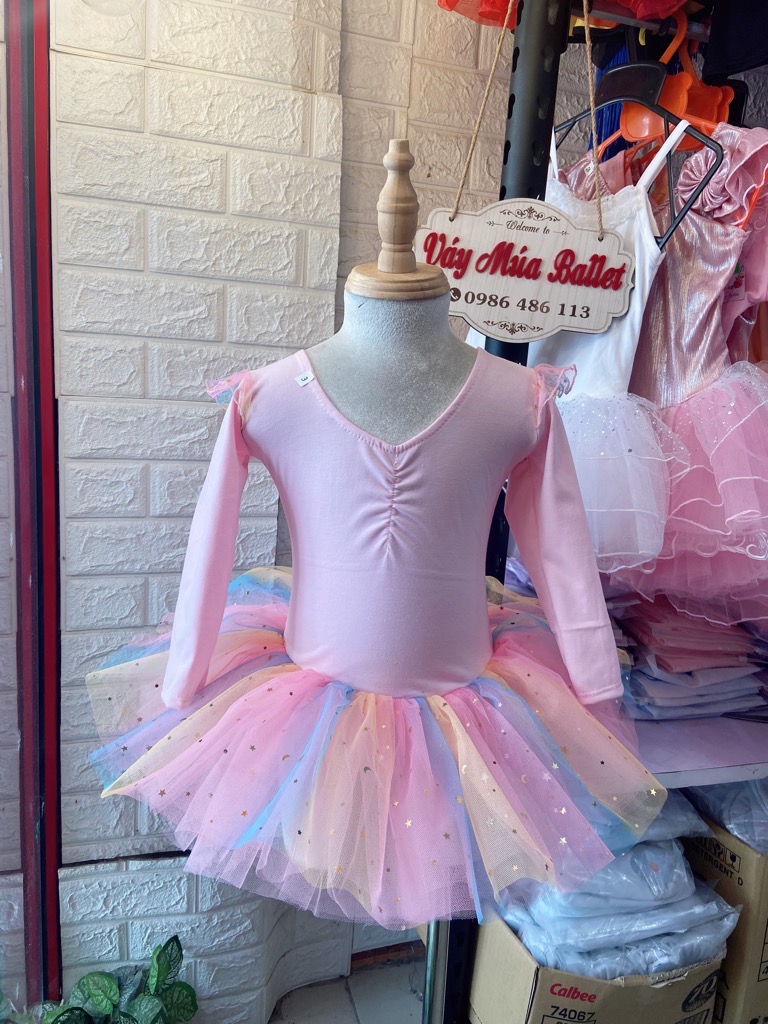 - Mô tả: Váy múa tiên dài tay cầu vồng hồng
