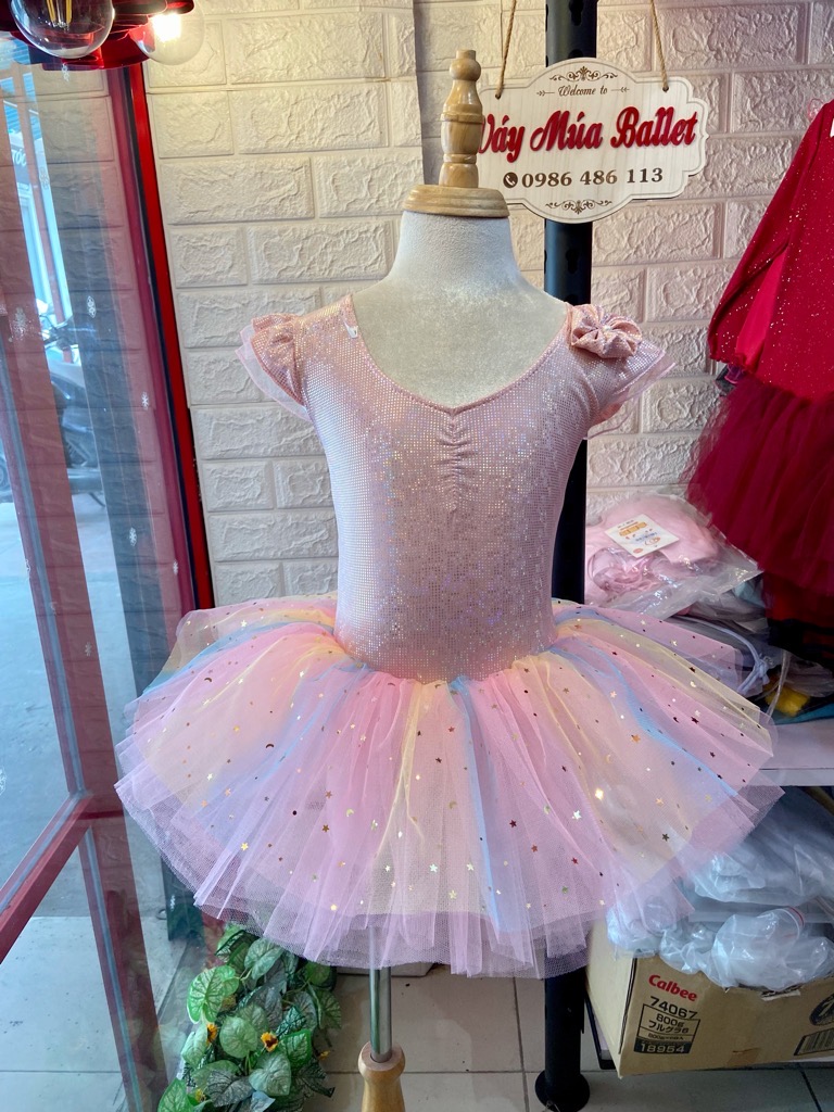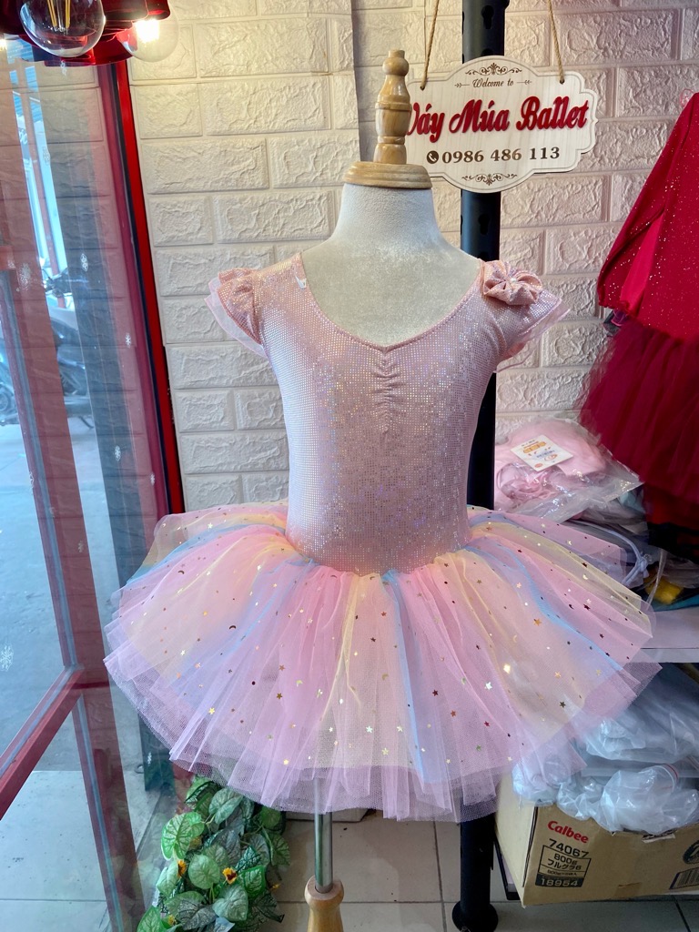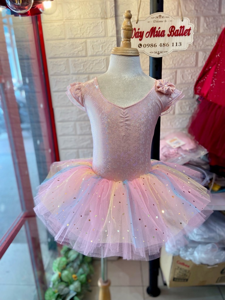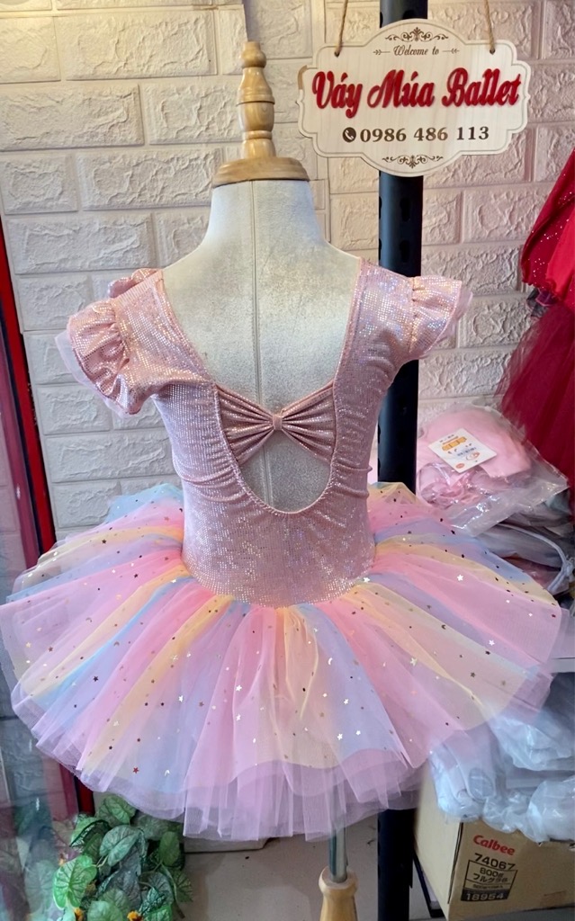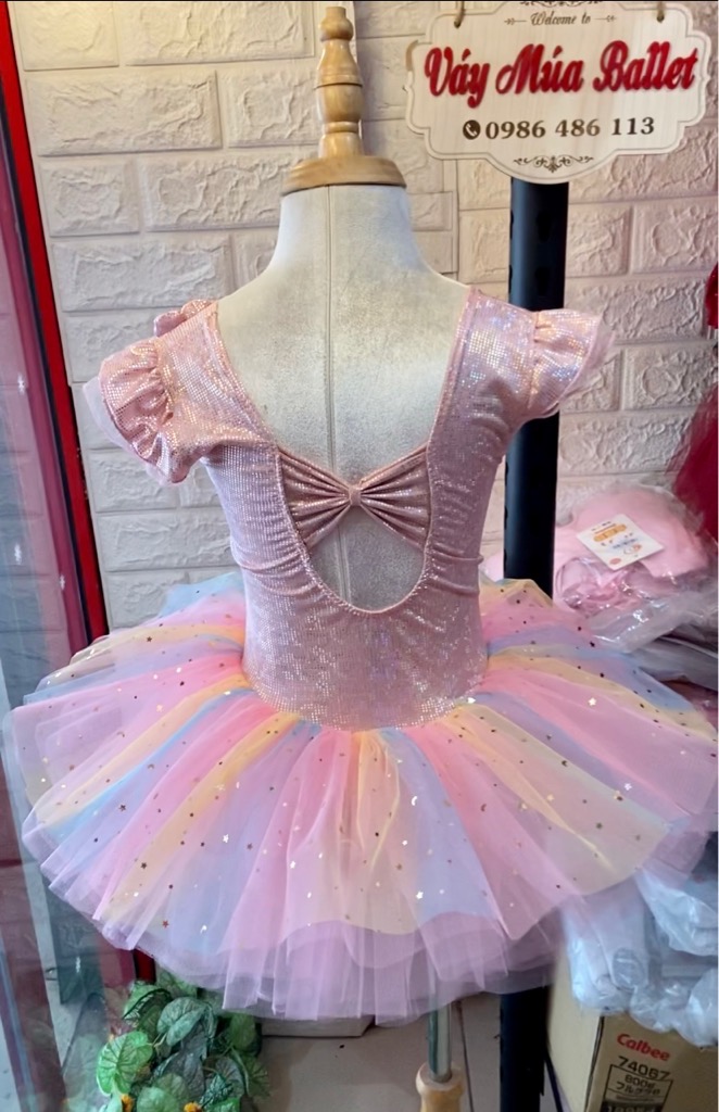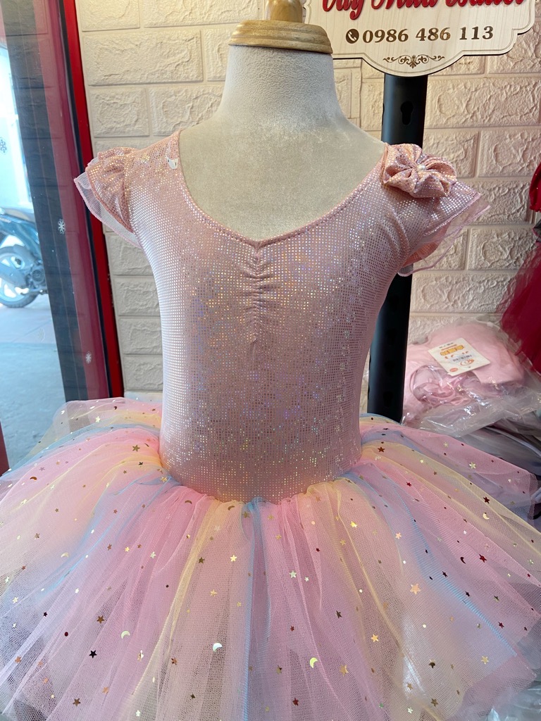 - Mô tả: Váy múa tay tiên thun nhũ lấp lánh cầu vồng