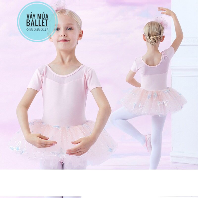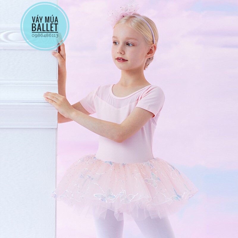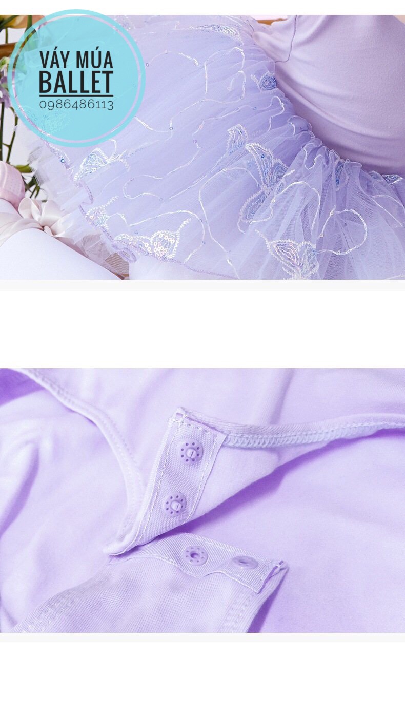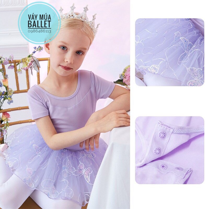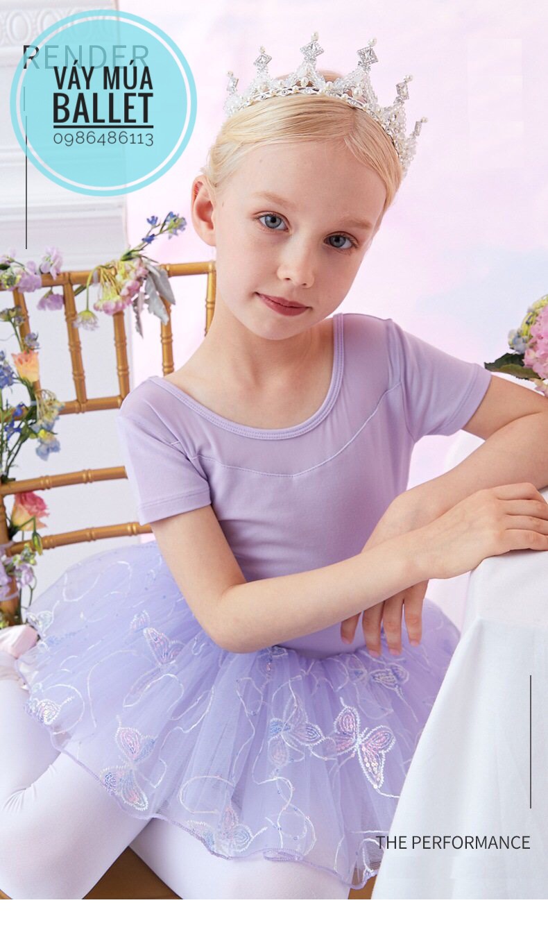 - Mô tả: Váy múa voan bướm lấp lánh ngắn (hồng, tím)