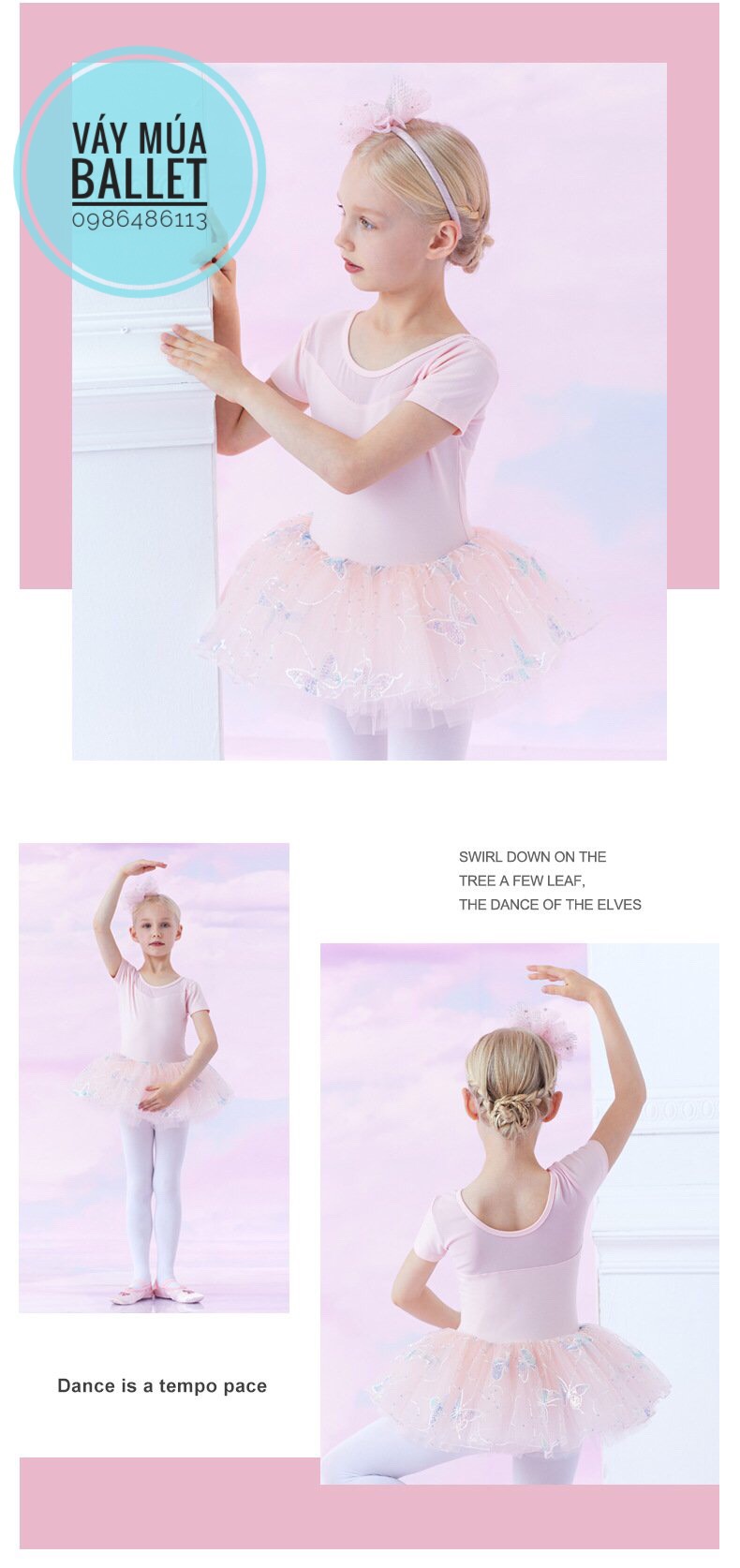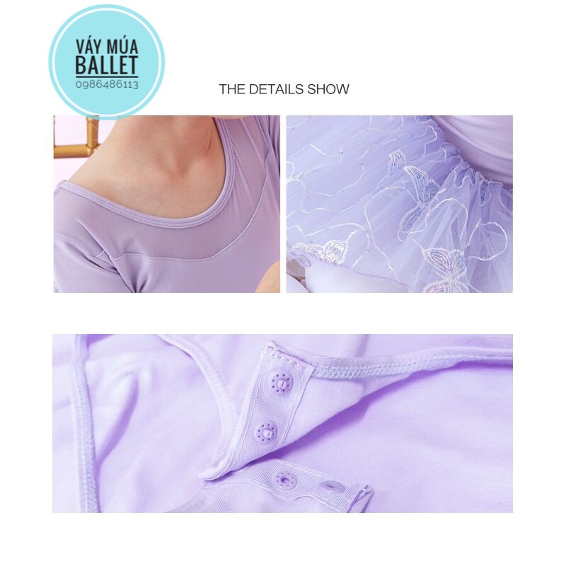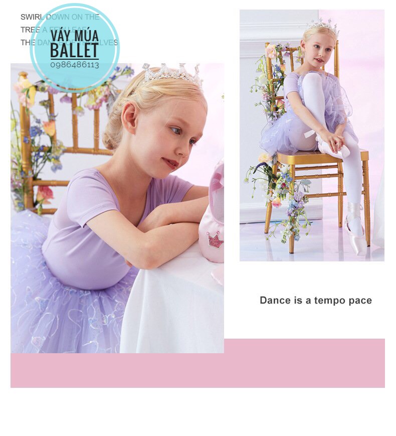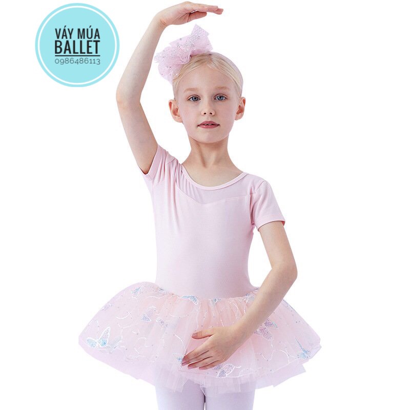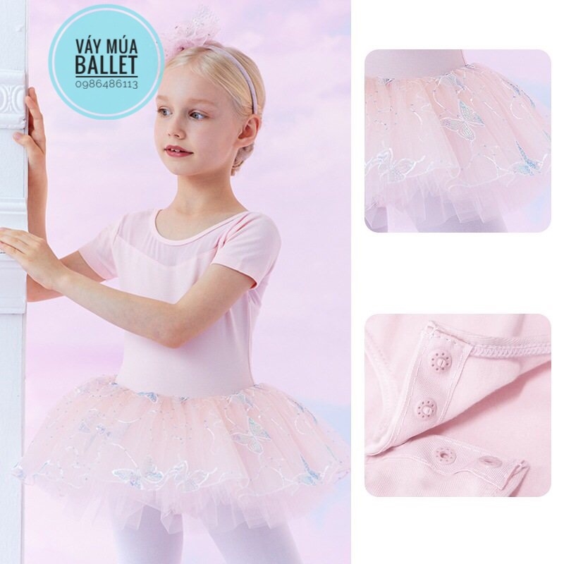 - Mô tả: Váy múa voan bướm lấp lánh ngắn (hồng, tím)