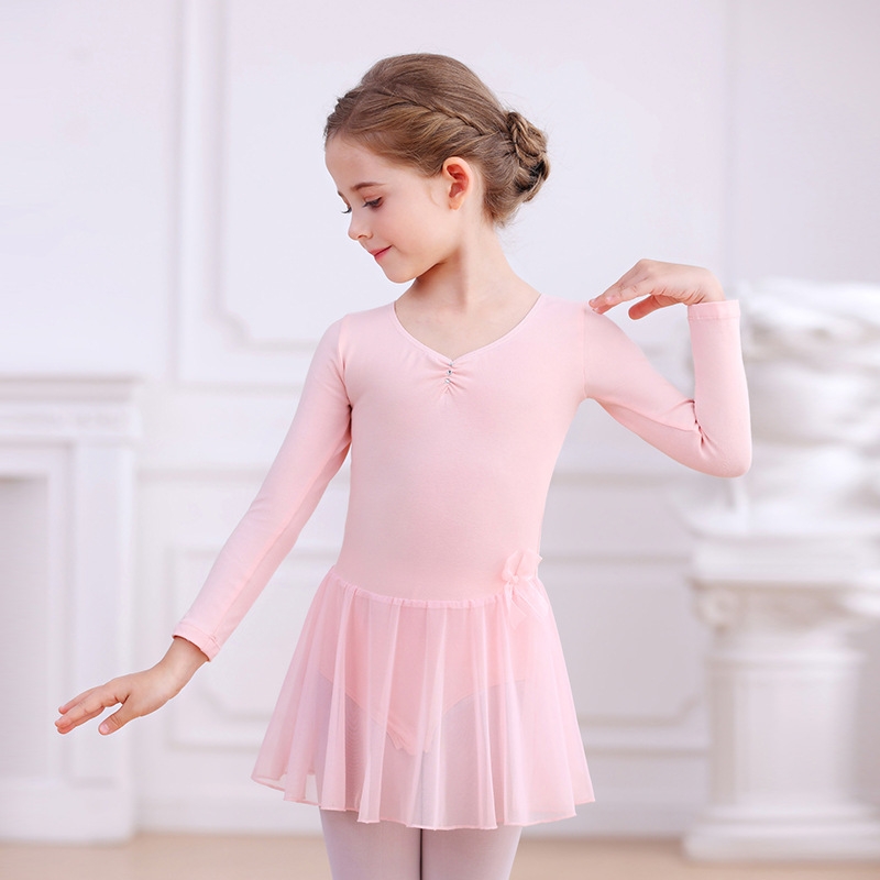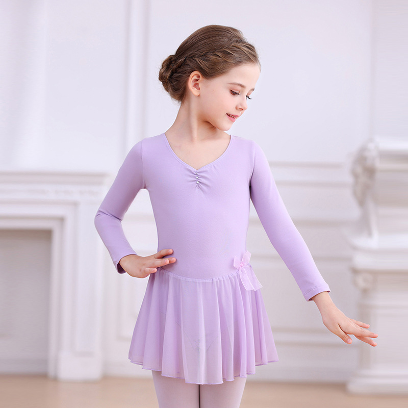 Váy tập múa tiên nơ lưng sao dài tay (tím, xanh, hồng)